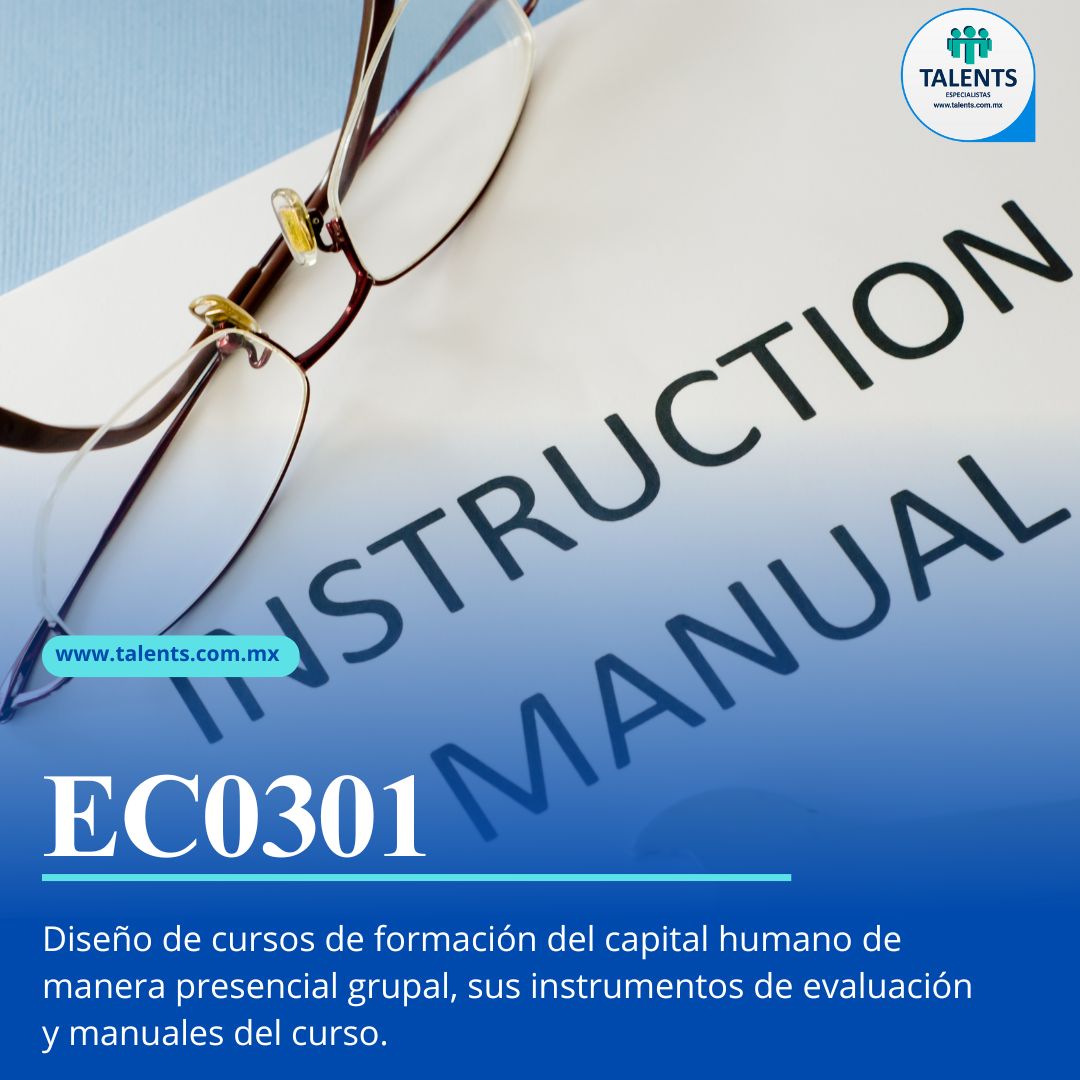 EC0301 Diseño de cursos de formación del capital humano de manera presencial grupal, sus instrumentos de evaluación y manuales del curso.